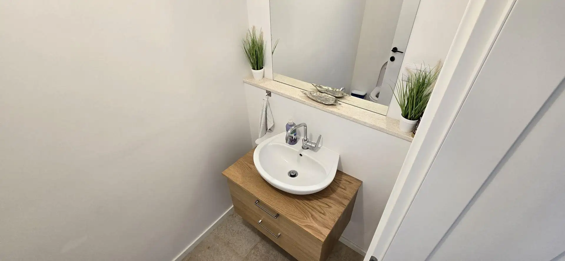 Second residence: The second residence is a cozy 50 m² apartment located on two floors, with a separate entrance, making it ideal as guest accommodation. The first floor includes a kitchen, living room, and dining area, a small guest toilet, and an internal staircase leading to the upper floor. Upstairs is a bedroom with an en-suite bathroom.
