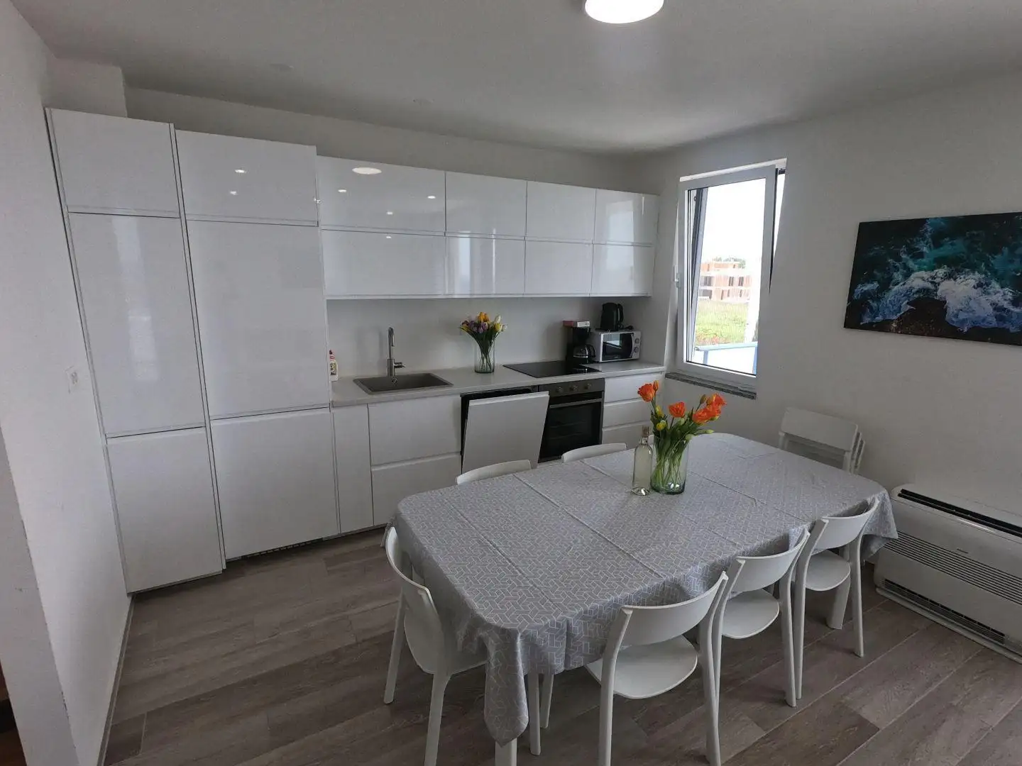 Villa R2, with a net area of 153.45 square meters, spans both the first and second floors, with private access to the rooftop terrace. Inside, you’ll find four spacious bedrooms and three elegant bathrooms, blending space and luxury in perfect measure. On the first floor, the master bedroom, a bathroom, a large living room, and a modern kitchen open onto a balcony—just the place to enjoy your morning coffee, breathing in the fresh sea air.