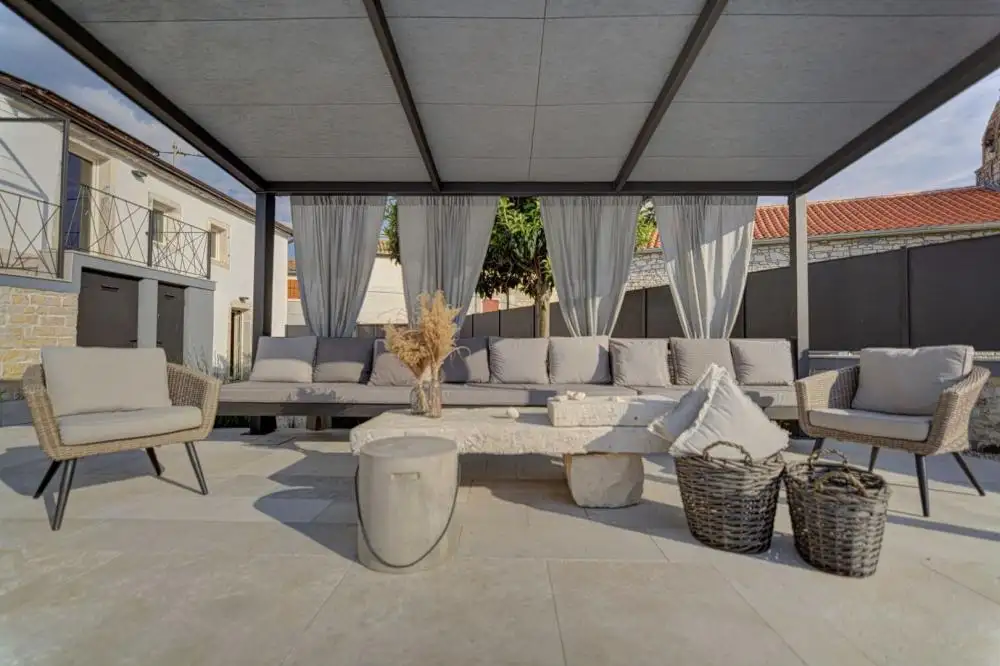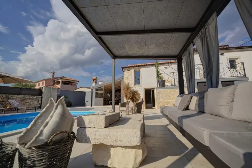 In a small picturesque place near Kanfanar, we are selling an exceptional, completely renovated old villa of 136 sq.m. with a swimming pool, on the territory of 350 sq.m.. This beautiful indigenous villa conquers at first sight with a combination of tradition - stone and wood and modern design with straight and clean lines.