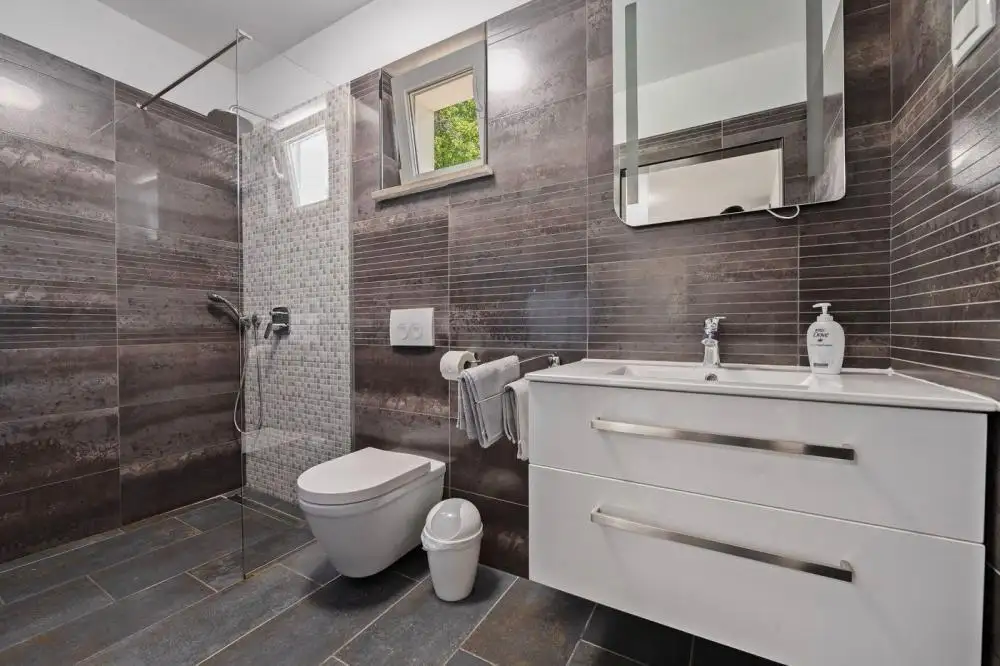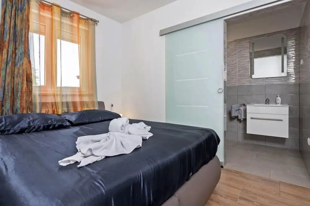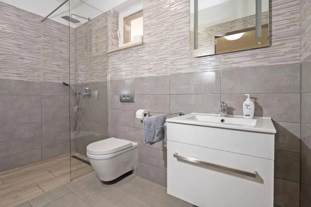 The living space is clearly defined and used to the maximum. It consists of an open concept space that unites the living room, dining room and kitchen, four bedrooms, four bathrooms and a guest wc.