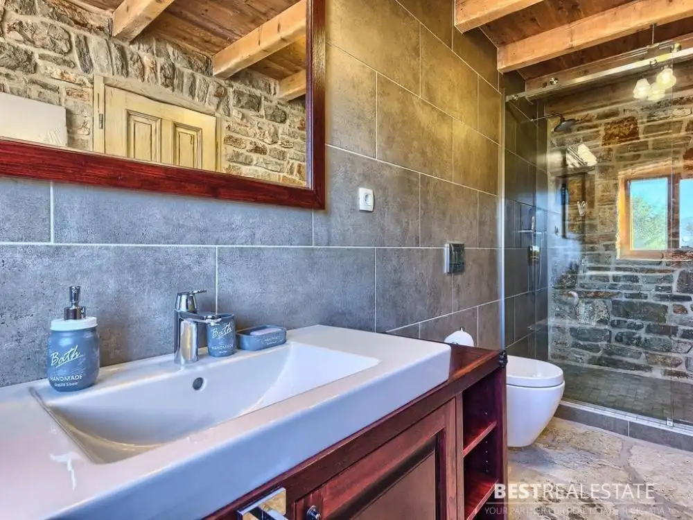 On the ground floor there is a charming apartment with a spacious bedroom overlooking a covered terrace with built-in fireplace and dining area, bathroom, kitchen with dining area and living room with access to the balcony. There are also two additional storage rooms for maximum functionality. On the second floor there is a second apartment with two bedrooms, a bathroom and an open living area with a kitchen, a dining area and access to a balcony with views. One of the rooms also has its own balcony, which further enhances the feeling of spaciousness and comfort.