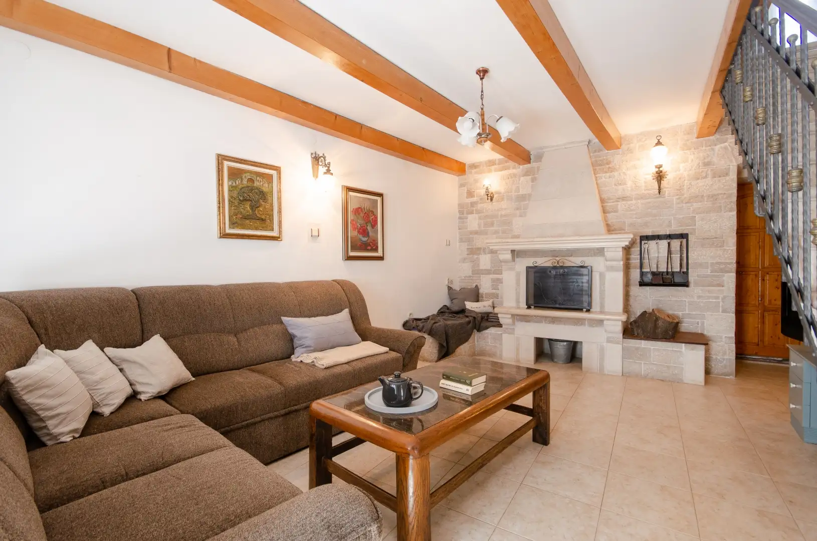 Villa occupies 220 m2 and is located on a plot of 378 m2. It has a fully equipped kitchen with a dining area, an elegant living room with a fireplace and a toilet for guests. Stone staircases lead to the ground floor, which includes two comfortable bedrooms with private bathrooms, while the second floor also houses two spacious bedrooms, each with its own bathroom.