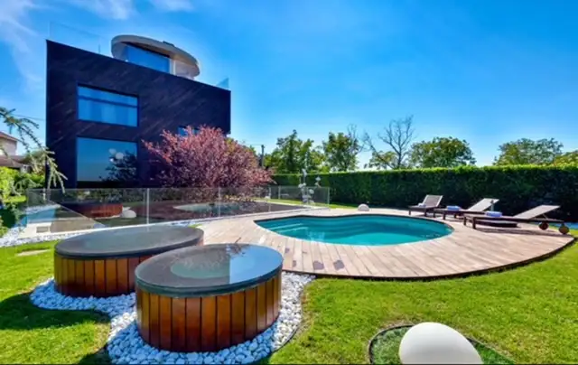 Built in 2010 and renovated in 2021, the villa covers three floors and supports both residential and commercial use. It includes heat pump heating system, air conditioning, electric blinds, fireplace, gym, sauna, pantry, laundry, smart home features, fiber optic internet, video surveillance, security alarms, security doors and adaptations for accessibility. The exterior environment includes a swimming pool, terraces, balconies, loggia, a barbecue area and thoughtfully organized exterior spaces. Documentation, such as building and settlement permits, as well as a net act of ownership, is available while an energy certificate is in the process of being obtained. The house has ceramic coating and PVC external window frames, as well as convenient access to public transport.