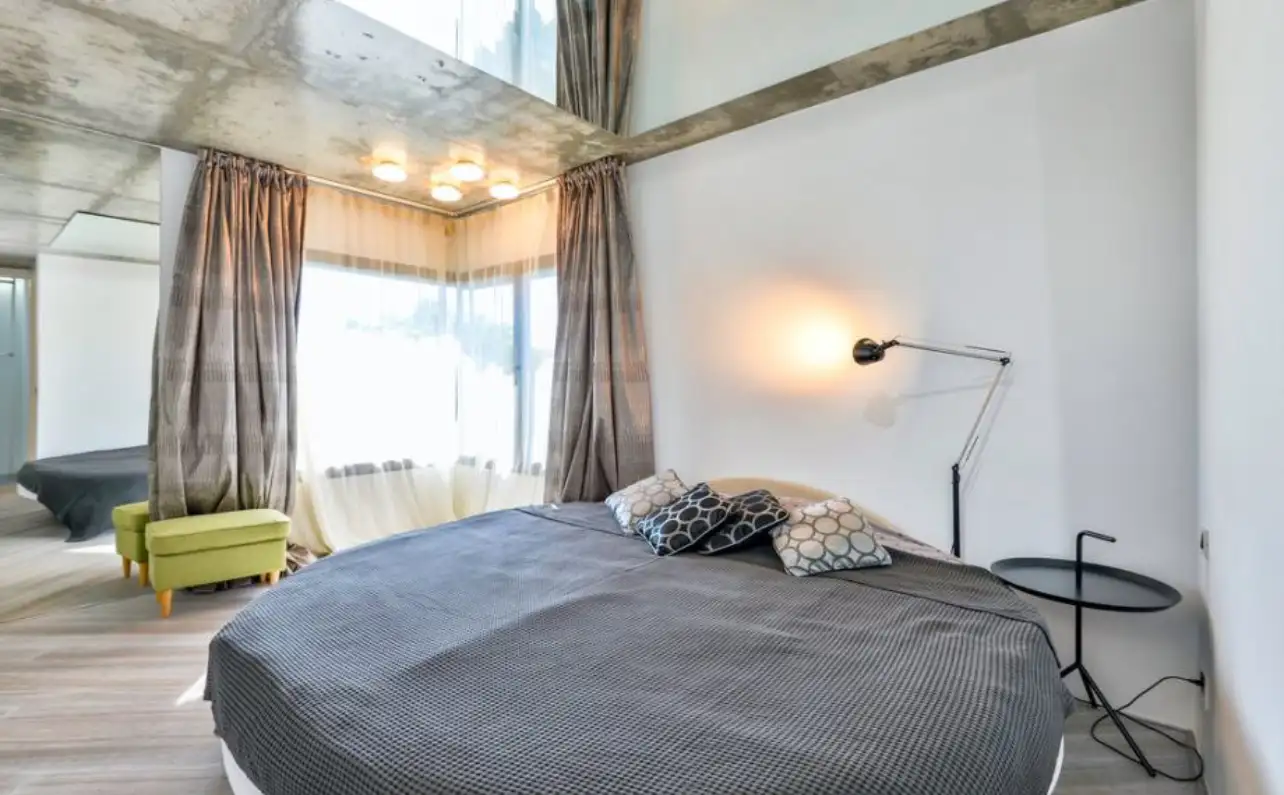 > On the top floor there are two quiet bedrooms and a modern bathroom, forming a comfortable and secluded area for sleeping. Above all this, the roof of the terrace serves as a signature feature of the villa - an elevated outdoor lounge area with panoramic views and a private Jacuzzi, ideal for sunsets, social evenings or moments of quiet reflection.