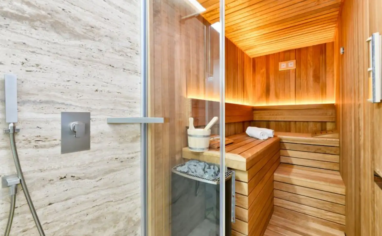 The first level sets an immediate toneasure and refinement. The custom-made kitchen seamlessly transitions into an elegant dining room, while a separate study provides a secluded workspace perfect for focused work. A stylish bathroom and a relaxing sauna complete this floor, establishing it as a personal health and comfort zone.