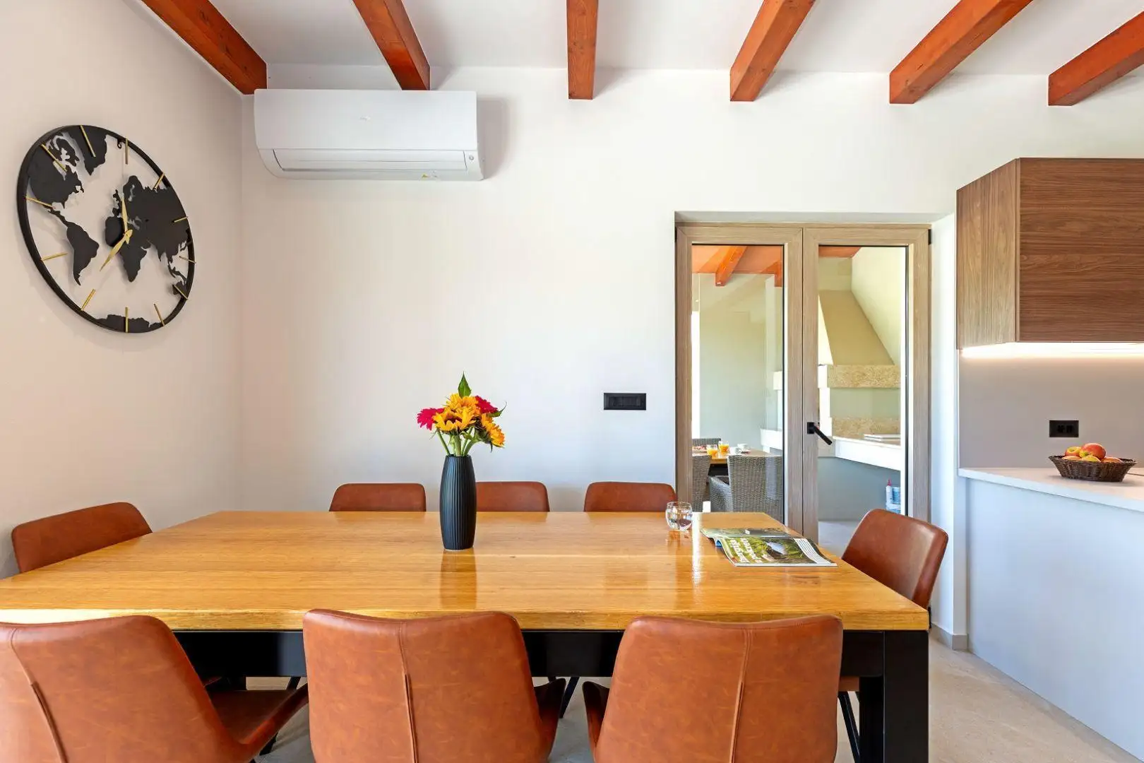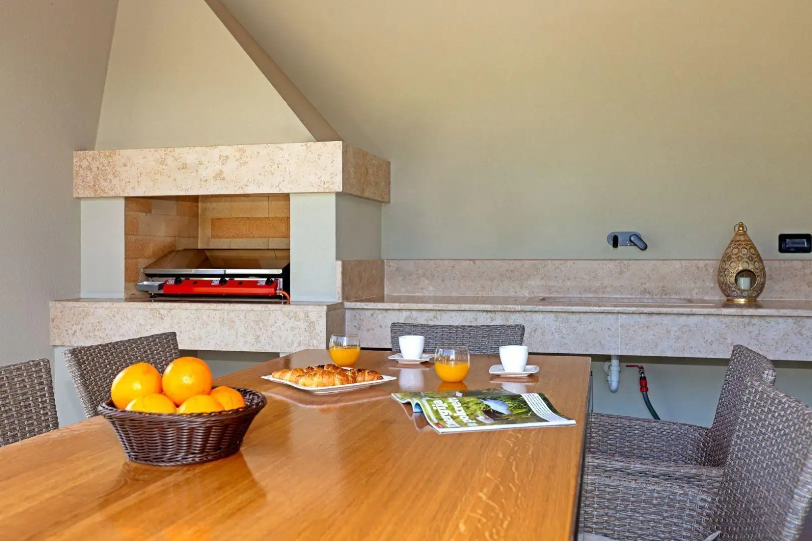 Upstairs, on the 1st floor, there are two bedrooms, each with an en-suite bathroom and access to a pergola-covered terrace.