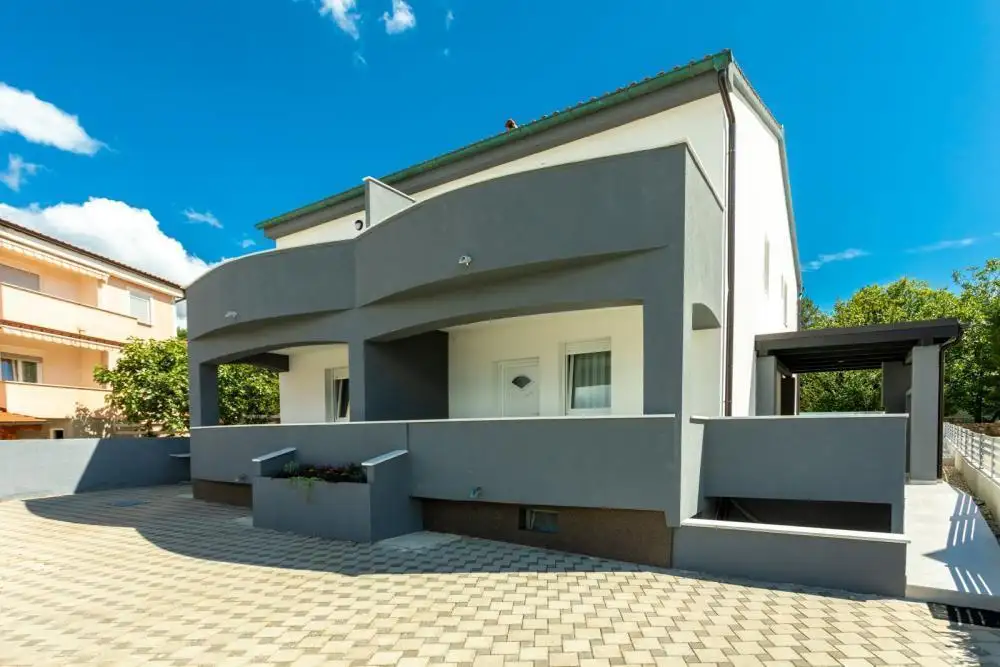 Adjacent villa with swimming pool for sale just 100 meters from the sea in the Gulf of Solina on the island of Krk.