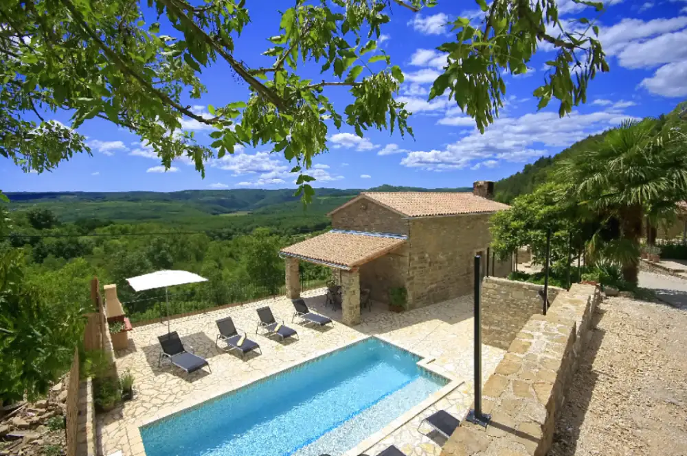 Two stone villas with swimming pool in Oprtalj with a view of Motovun!