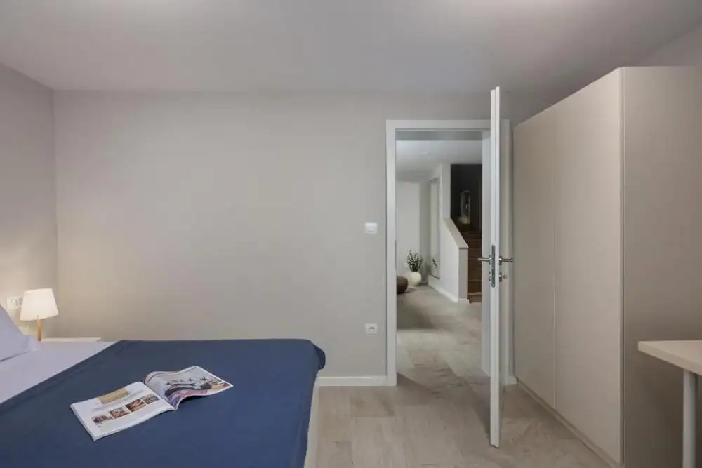 On the ground floor there is a beautiful living room with kitchen and dining room, one bedroom, bathroom and storage room. From the living room there is access to a covered terrace from which you can access the summer kitchen with a fireplace, a heated swimming pool with counter-current swimming, a sunbathing area and a beautifully landscaped garden.