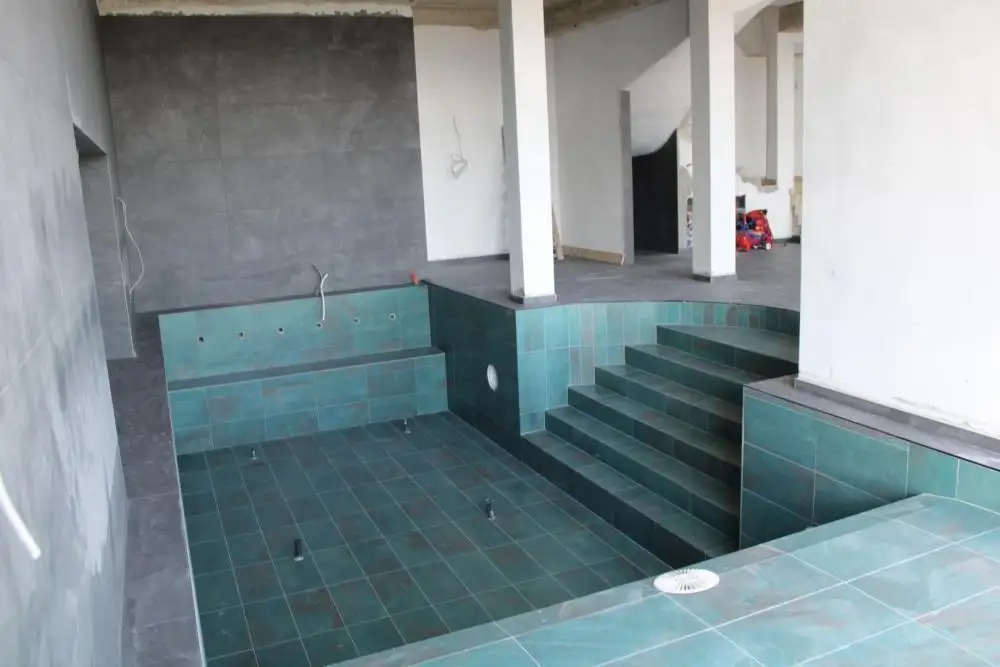 The basement part includes the engine room, and on the ground floor there is a gym, spa center, indoor pool, hydromassage tub, sauna, shower, toilet and bar.