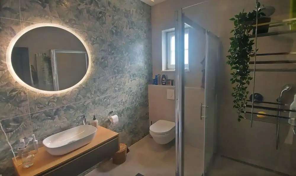 On the ground floor there is an open-concept living area that unites a custom-made kitchen from the German manufacturer Moderano, a dining room and a living room with access to a covered porch with a summer kitchen and dining room. In the rest of the ground floor, there are two bedrooms with their own bathrooms, a technical room/storage room and a toilet. The floor plan of the ground floor is complemented by a studio apartment with a separate entrance.