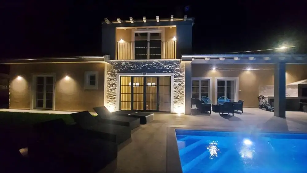 The quality of the construction and furnishing of the property is recognized, for example, in the insulation of the walls of 10 cm, demit facade, ventilated roof with 25 cm stone wool, windows with three-layer glass - glass 4 seasons, burglar-proof doors, underfloor heating, heating of sanitary water and swimming pool via heat pumps, waterproofing of all external surfaces and a sprinkler and drip irrigation system. The location, structure and comfort make this property an ideal opportunity for a peaceful family life as well as an investment for the purpose of tourist rental.