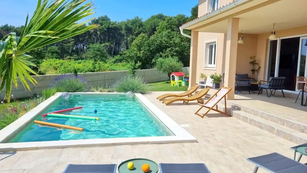 We present a new villa, built in 2022, just 3 km from the sea in Pula, in the Valdebec area, built to the latest standards!