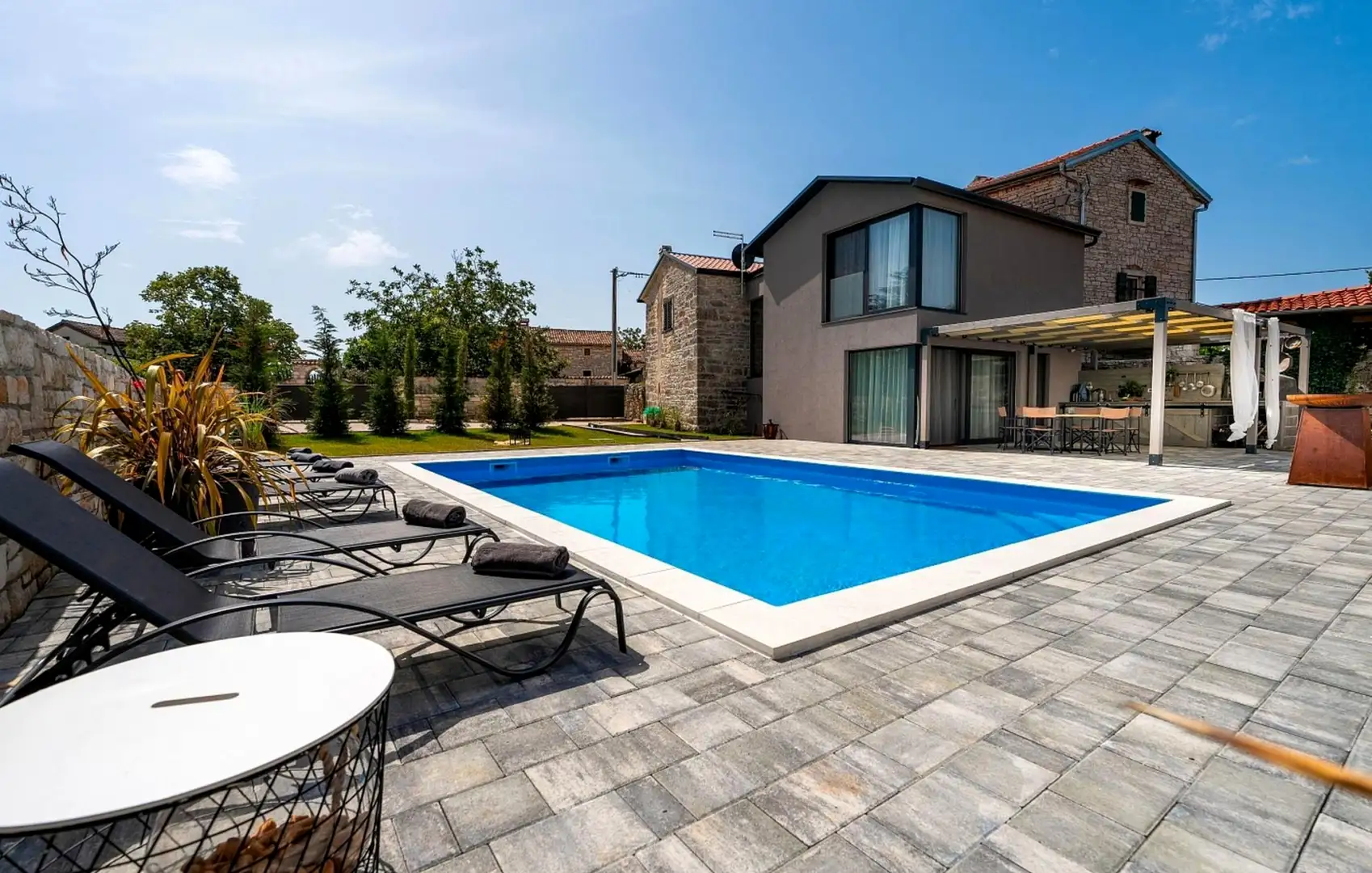 For sale: Modern stone house with swimming pool in Canfanar, Istria – a combination of traditional charm and modern comfort.