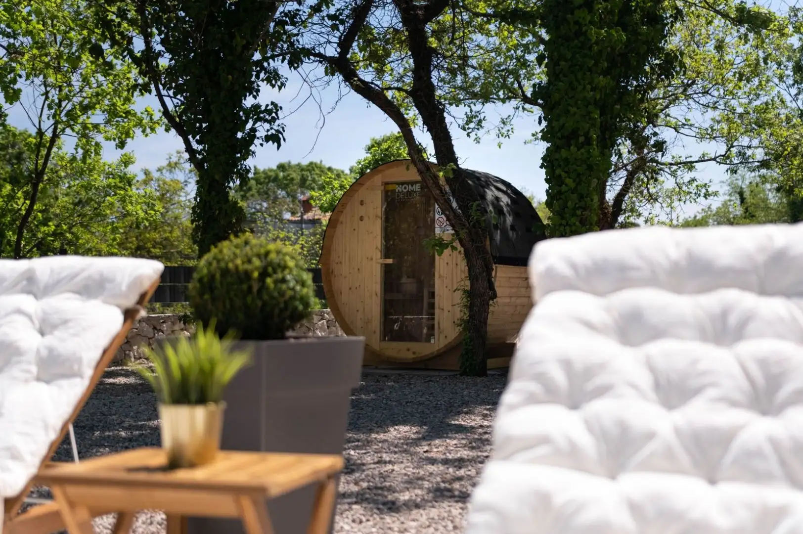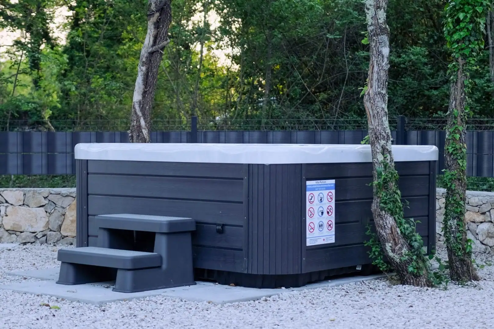 The fully fenced yard is perfectly decorated using elements of landscape design and lighting. The street area offers perfect harmony and relaxation with a heated pool and sun terrace, Jacuzzi, street sauna and playground.