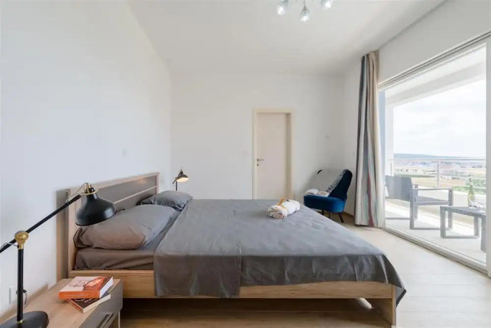 The villa has a spacious fenced roof terrace with a magnificent view of the sea.