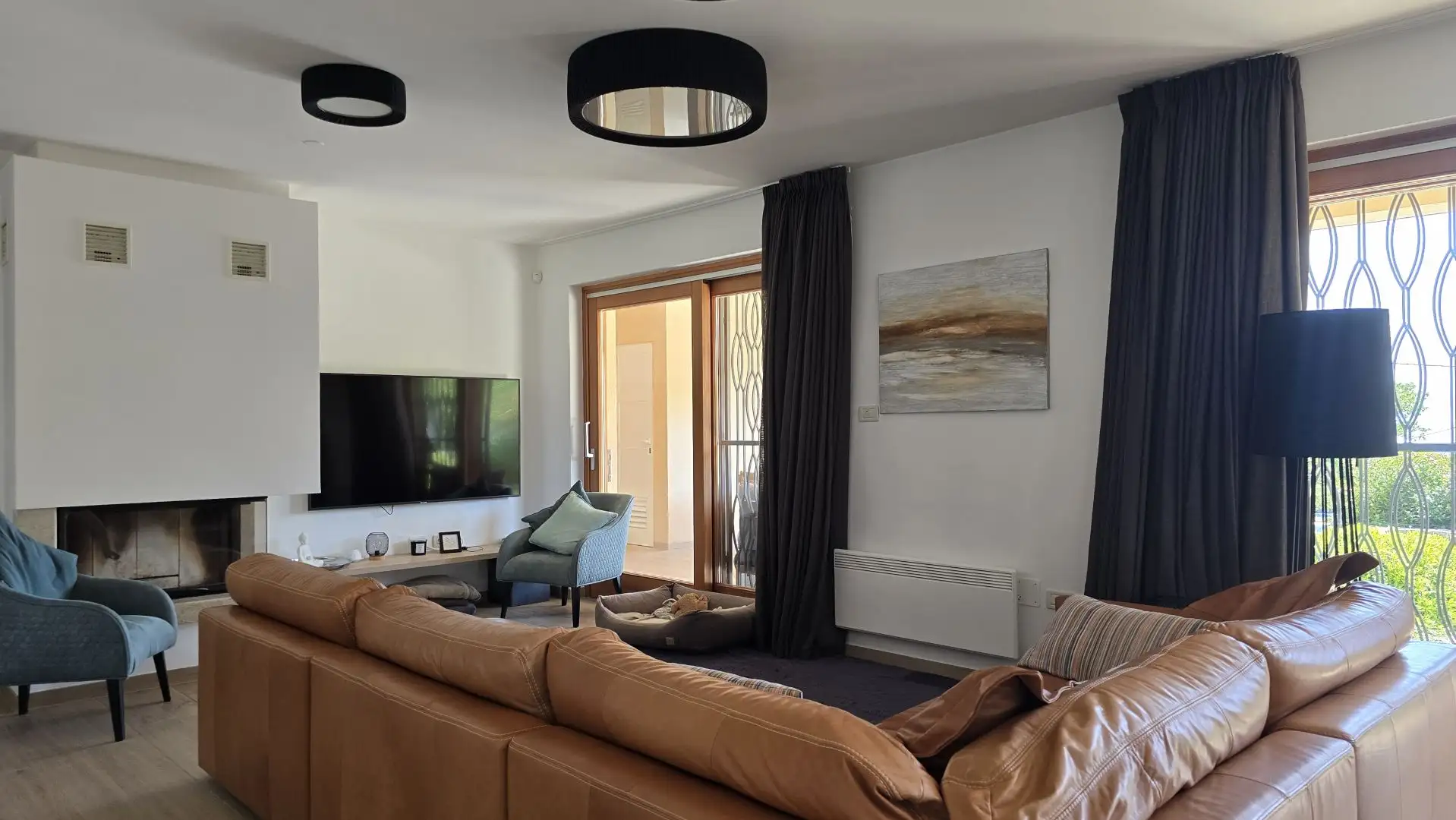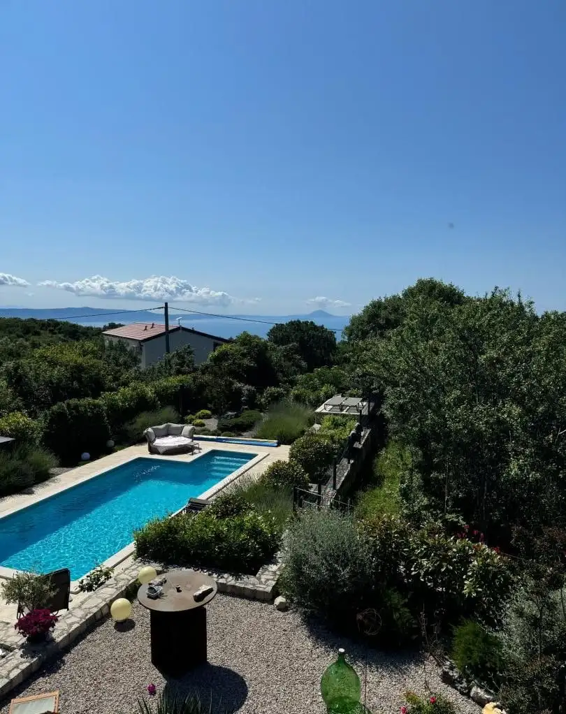 The area of the house is 137 sq.m. on a generous plot of 783 sq.m., the house has three sun-filled bedrooms, each of which overlooks its own balcony with breathtaking views of the sea, greenery and endless skies. Inside, natural stone walls, warm wooden accents and soft Mediterranean shades create a cozy and welcoming atmosphere, while modern elements such as a stylish kitchen with osmosis-filtered drinking water and an elegant fireplace add a touch of luxury. The outdoor living room and dining room smoothly transition to a spacious terrace framed by large glass walls, which allows you to enjoy nature. Step out to your private terrace with a swimming pool and a beautifully decorated garden - a true Mediterranean paradise filled with fragrant herbs, colored flower paths and a tranquil corner created for relaxation. The terrace is ideal for long summer evenings spent over outdoor dinner or barbecue with family and friends.