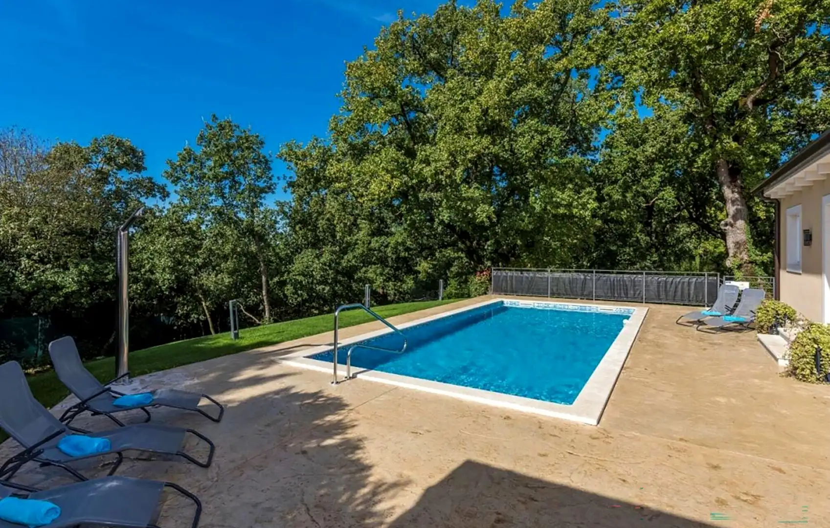 A beautifully decorated, fully fenced garden creates a private shelter centered around a refreshing pool and spacious sun terrace. Indoor summer kitchen with barbecue makes outdoor lunch and entertainment easy, ideal for enjoying the mild climate of Istria all year round.