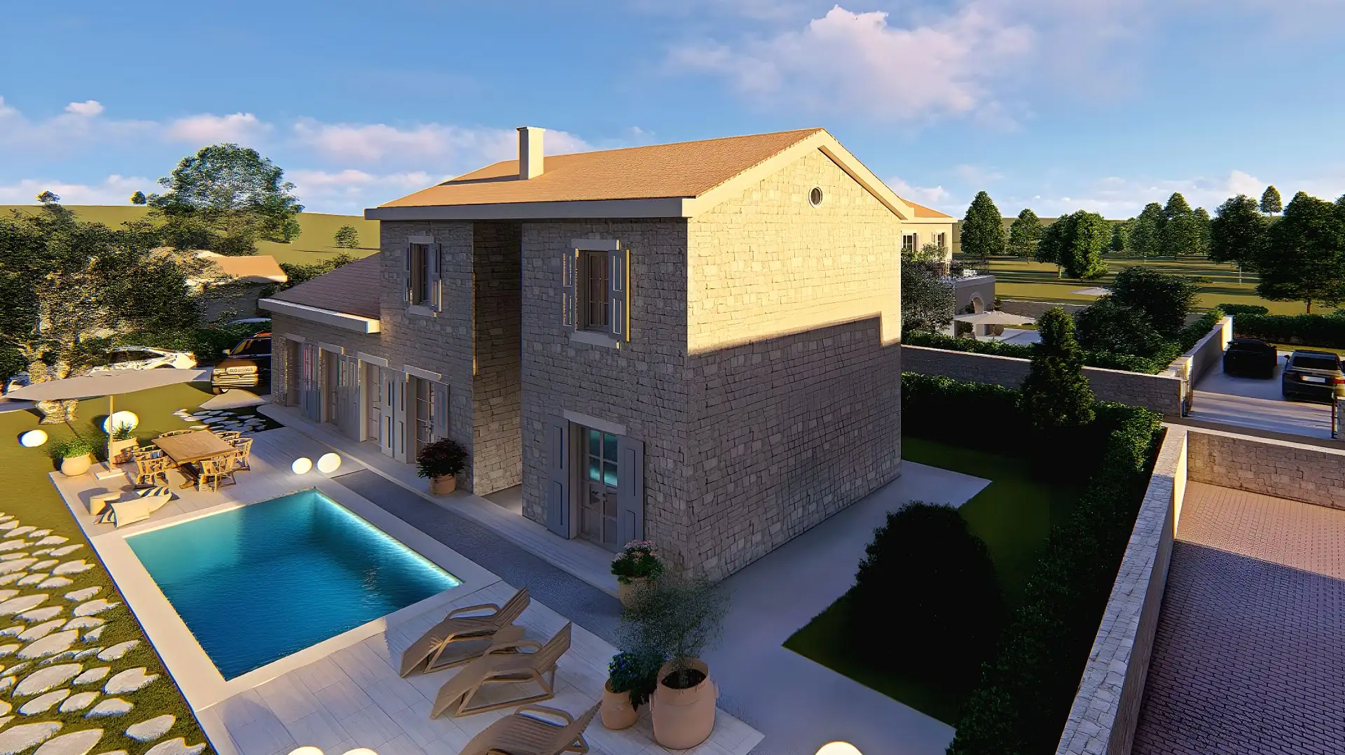 Package sale of two new modern villas in Brtongle, 8 km from the sea. It is also possible to buy each...