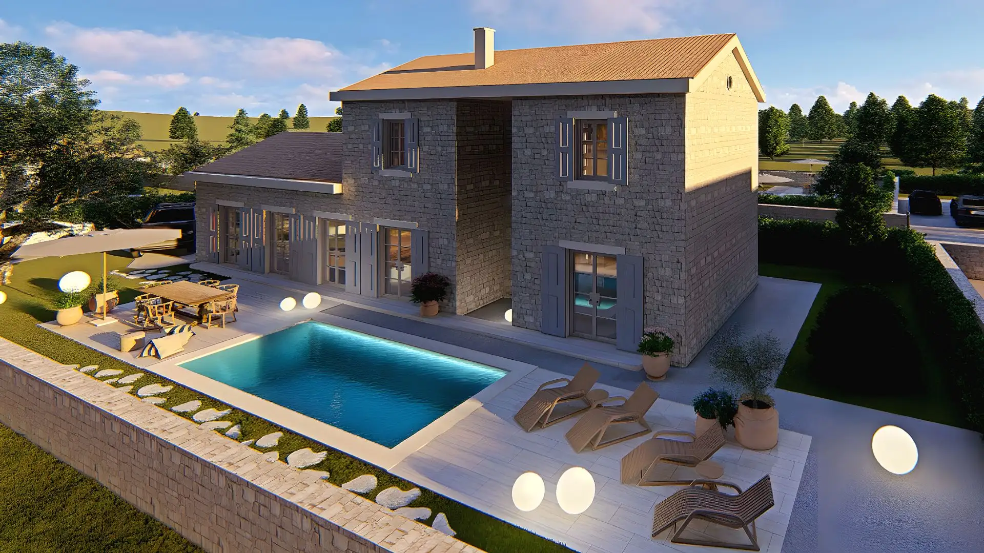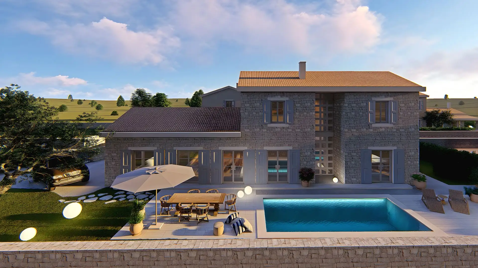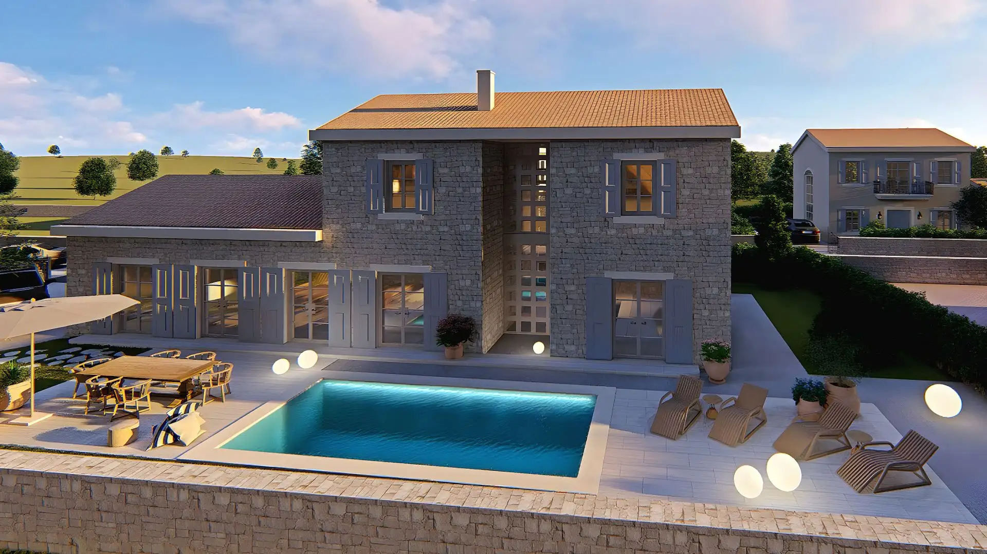 Novigrad Riviera, stretching along the west coast of Istrria, stretches from the riverside and easily accessible to the coastline <7pong> Located near Novigrad, this spacious and elegantly designed pool house is now available for sale. In addition to its superb location, the property stands out for its high-quality construction, providing long-term comfort and excellent living.