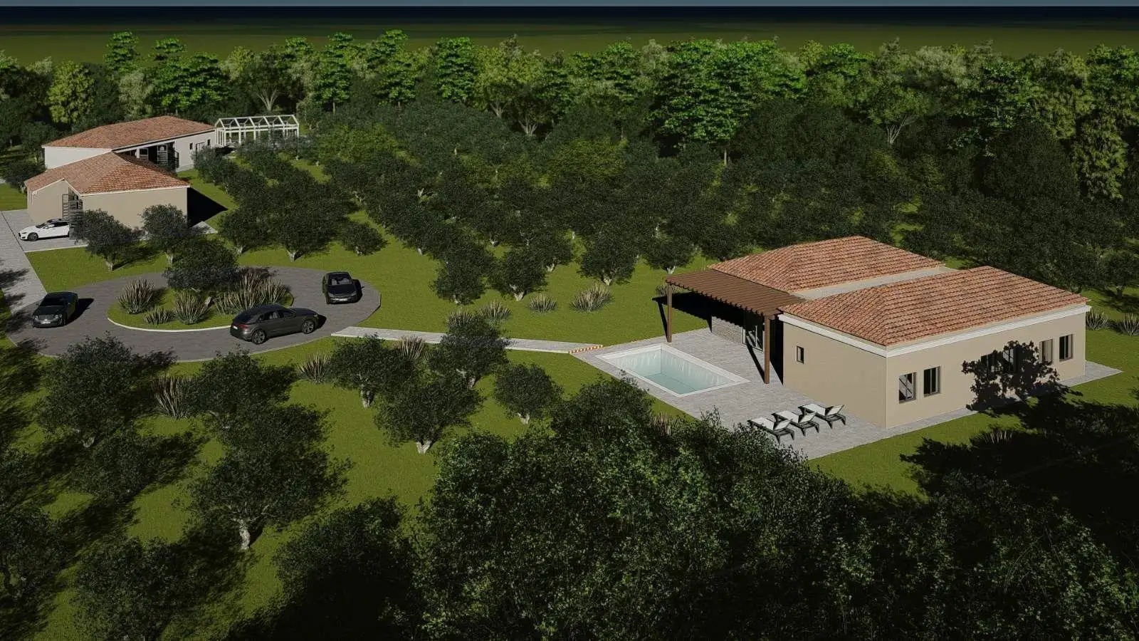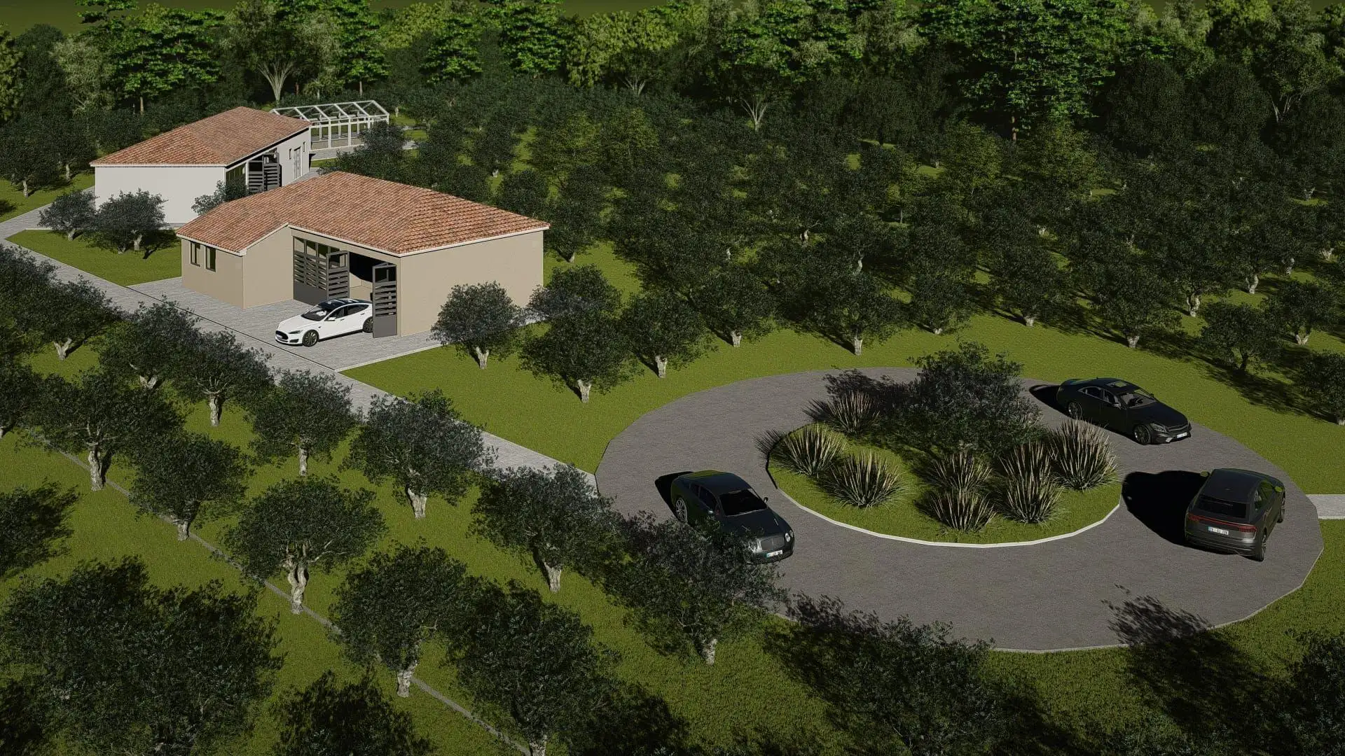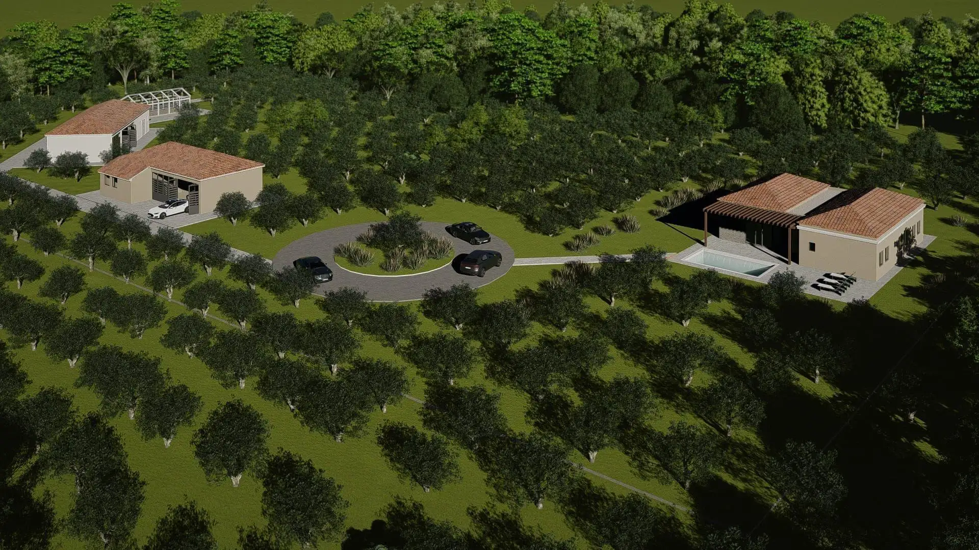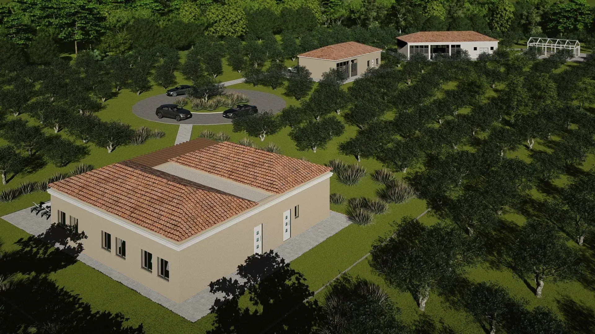 - Phase 2: House expansion of 150 m², Building 3 (outbuildings), Building 2B.