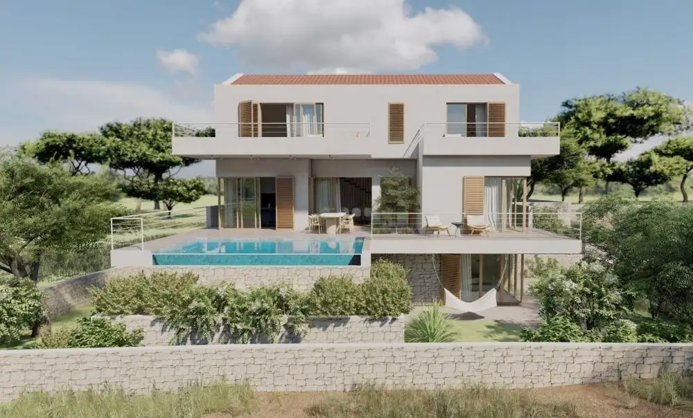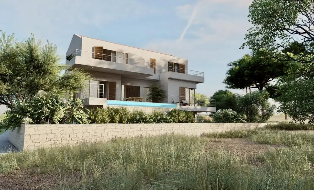 Modern villa with pool under construction on the island of Pag in JAKIŠNICA, 200 meters from the sea only!