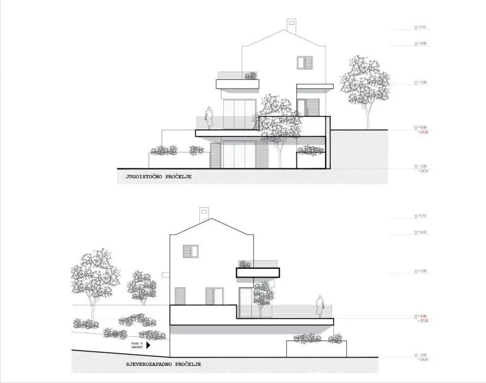 The villa is divided into three floors where in the basement we find a garage, laundry, engine room, storage room and one bedroom with wardrobe and bathroom.