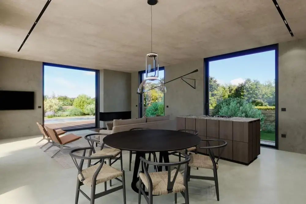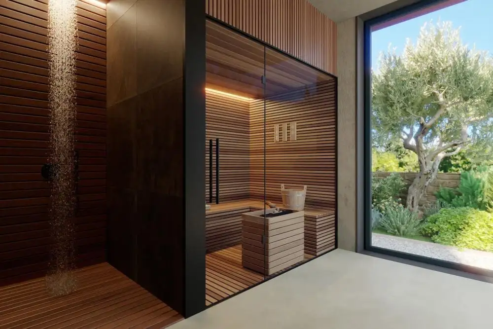 On the ground floor, the villa will have an entrance area, an elegantly decorated living room, a dining room, a kitchen, a guest toilet, a small technical room and a wellness area with a sauna to enjoy on cold days.