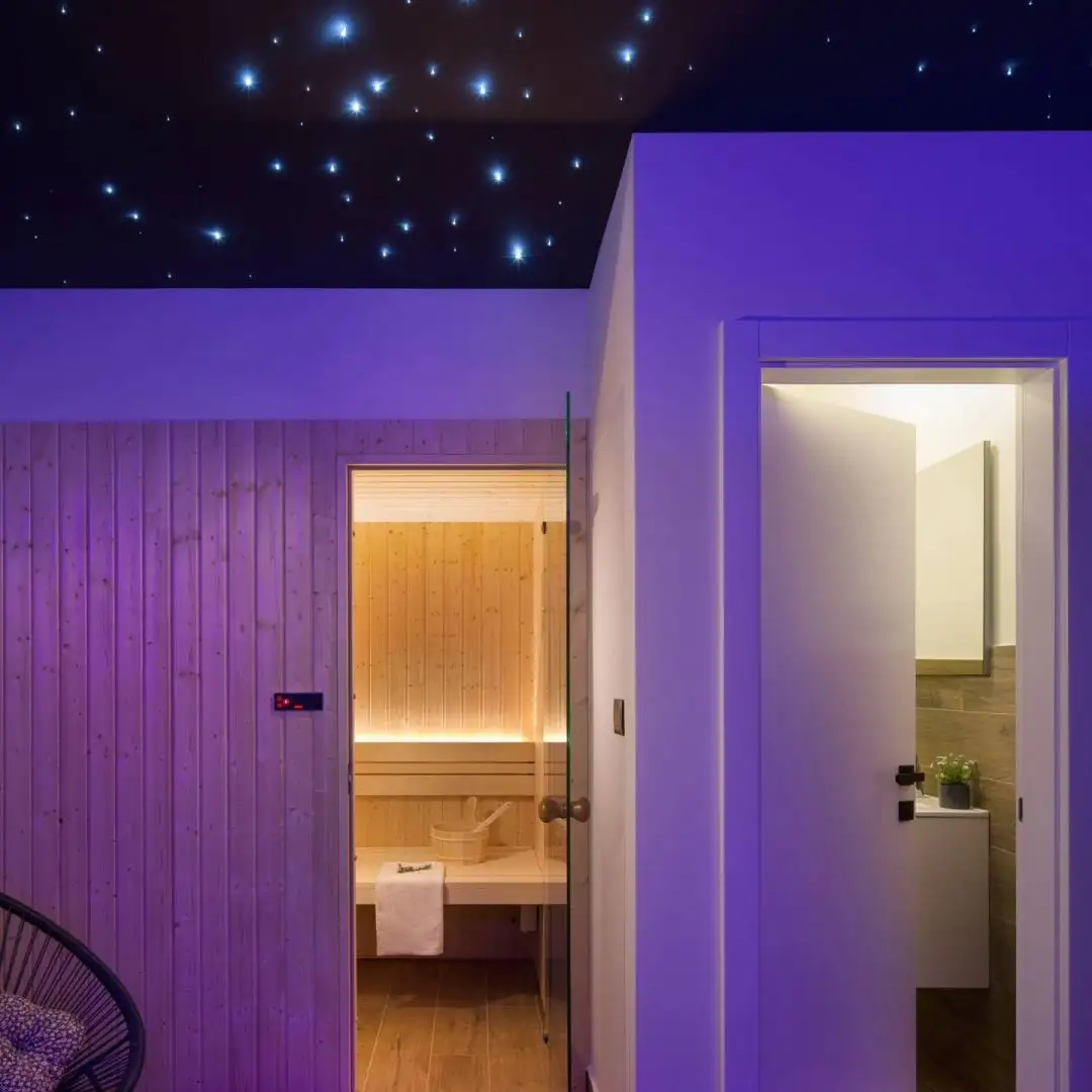 On the ground floor there is a spa area with sauna, a gym with a separate bathroom, a bedroom with a bathroom and practical auxiliary spaces such as a laundry room, toilet, technical room and warehouse. On the second floor there are three luxurious bedrooms, each with its own bathroom and access to a covered terrace with pergola, offering stunning views and a sense of freedom.