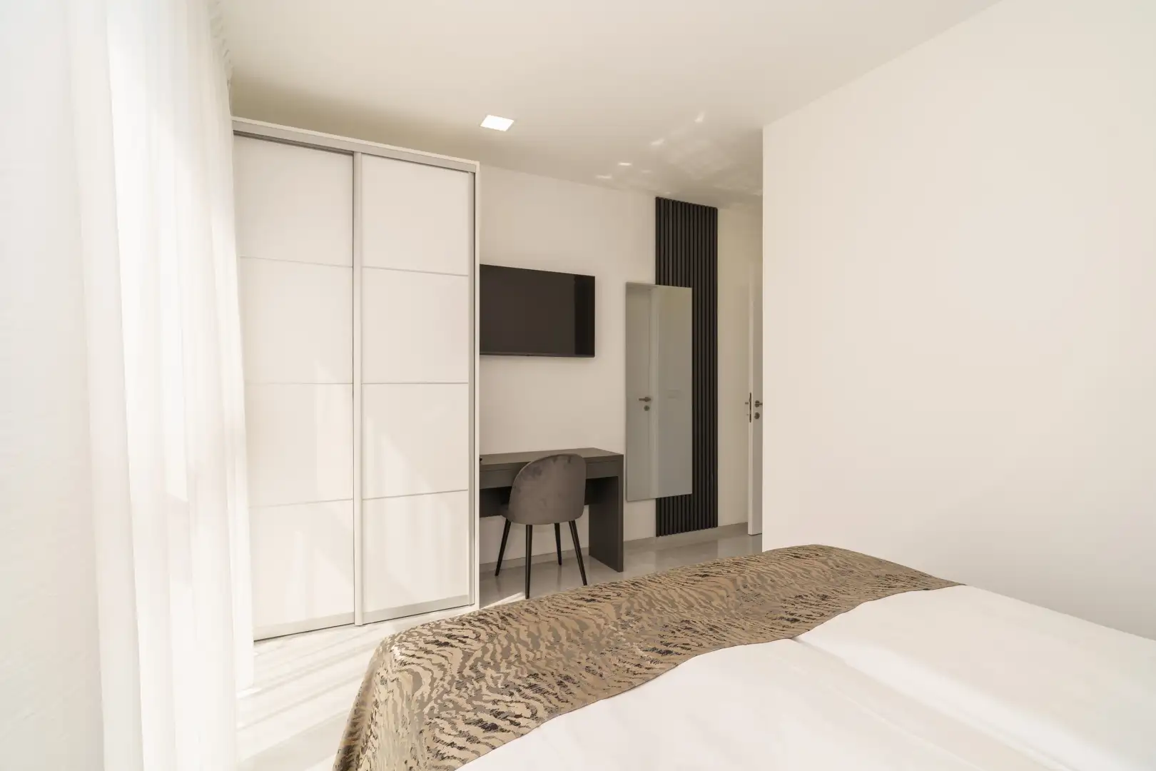 The second floor is reserved for a sleeping area accessible by an internal staircase. It includes three comfortable bedrooms, each with its own bathroom, and two spacious terraces, ideal for enjoying the surrounding nature. The outdoor space is designed for recreation and includes a tanning area and a private pool.