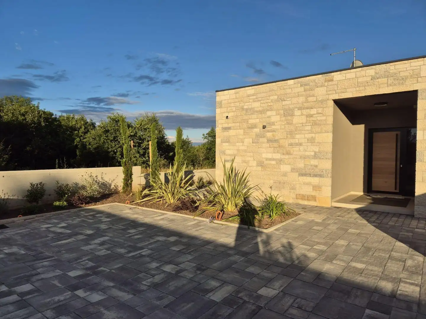 - Outdoor Amenities: The focal point of the garden is a 32 m² infinity pool, perfect for relaxation and entertainment. Adjacent to the pool is a sunbathing area and a covered terrace with a summer kitchen and dining space. The rest of the garden is designed in a charming Mediterranean style, featuring a variety of plants that add vibrant colors and delightful scents, enhancing the outdoor living experience. The entire property is fenced, providing maximum privacy and peace, with the villa surrounded by nearly untouched nature, ensuring no immediate neighbors.