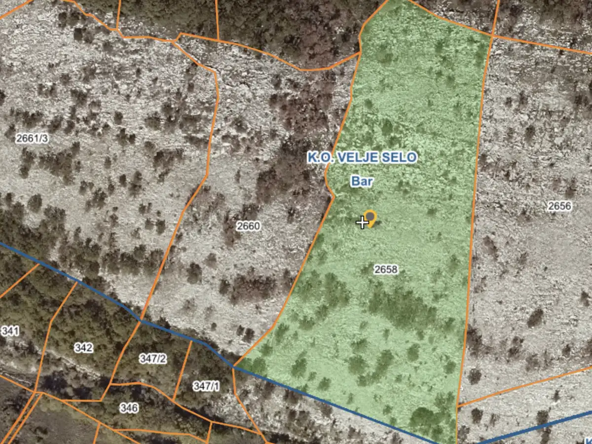 The plot of land of 12.379 m2 is located 7 km from the sea, above the village of Dobra Voda.