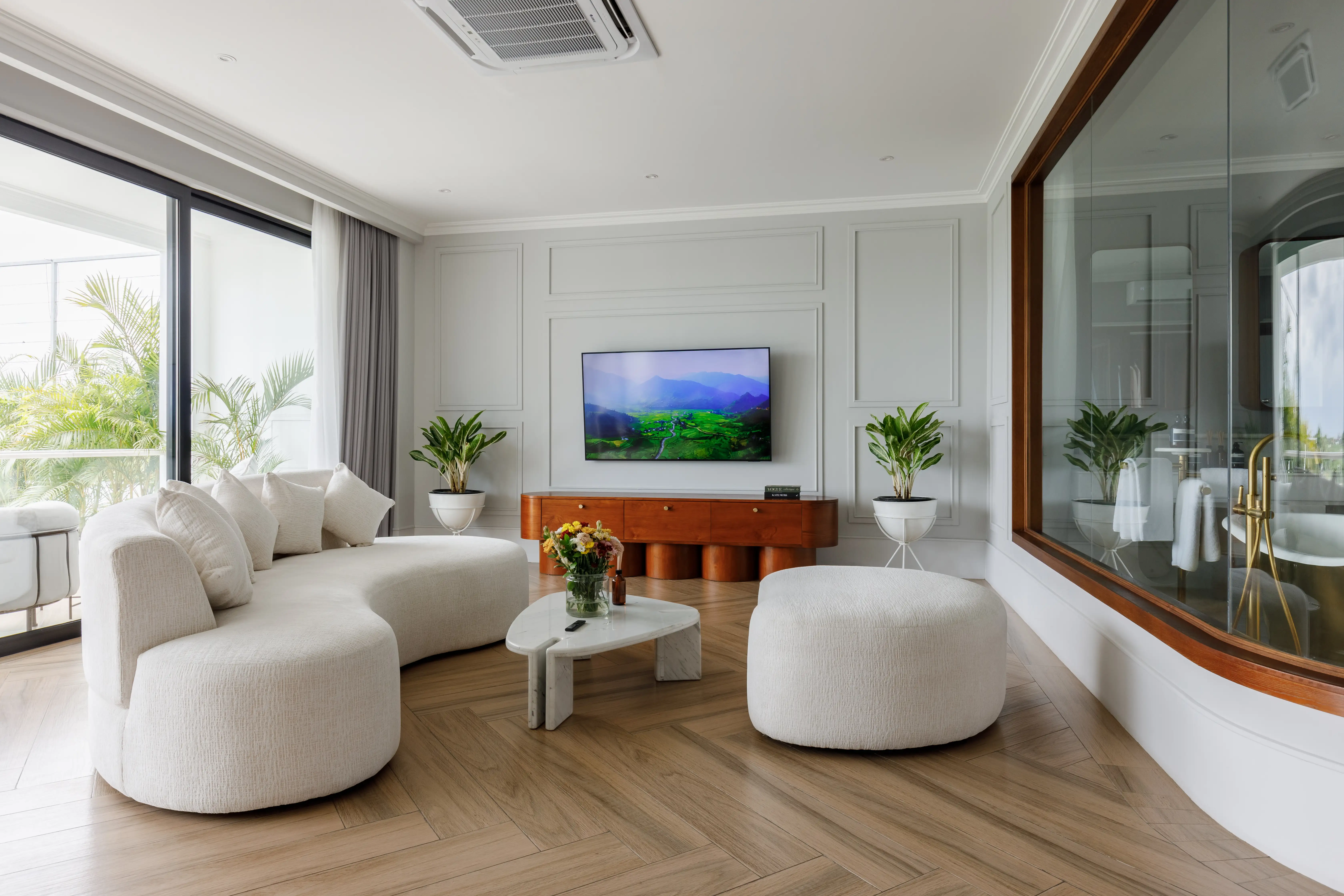 Connectivity and modern living are at the heart of this property. A commercial-grade WiFi system provides speeds up to 300 Mbps, ensuring reliable work-from-home and streaming capabilities. Inside, the villa is tailored for long stays, featuring spacious lounges, large windows framing lush views, and an inviting indoor-outdoor flow. The family-friendly layout balances privacy and shared spaces, creating a welcoming environment for children and guests. Designed with comfort and practicality in mind, each bedroom includes ample space, while the living areas encourage gatherings and entertainment.