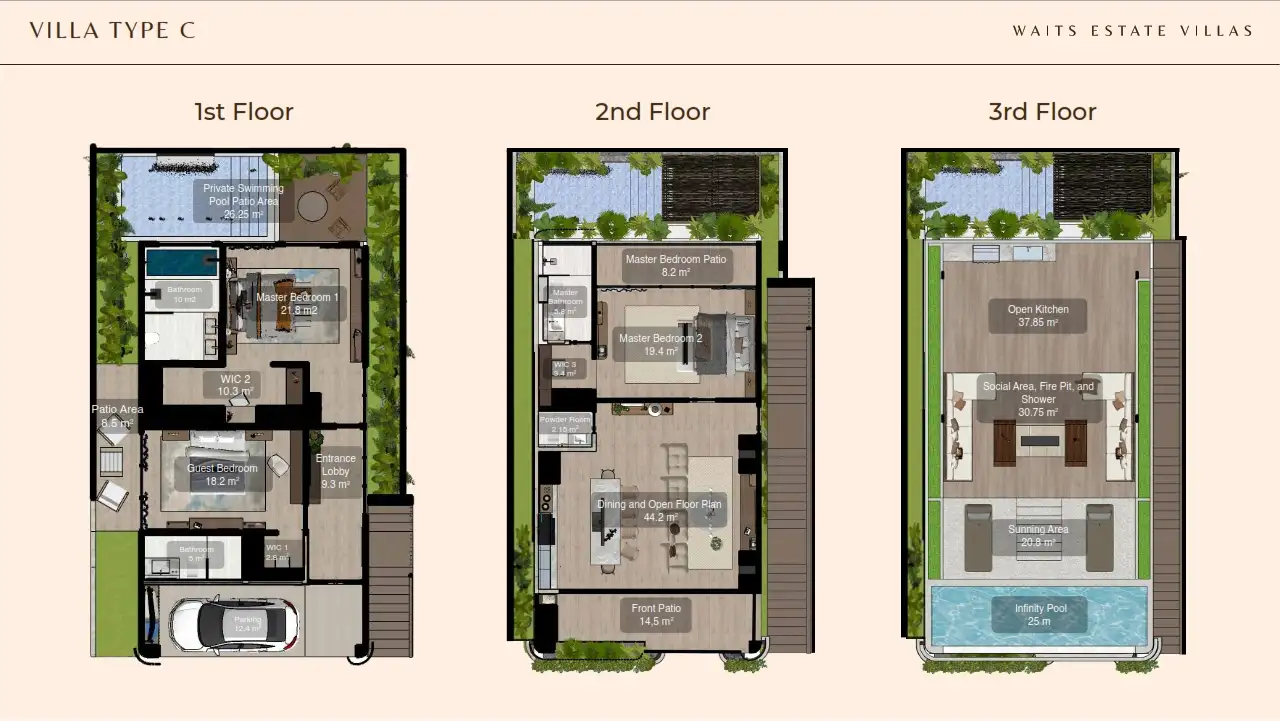 Discover the perfect blend of modern luxury and serene island living with this exquisite off-plan villa in the prestigious area of Pecatu, Bali. Priced at an attractive USD 595,000 and available with freehold ownership, this property represents a rare opportunity in the highly sought-after Bali real estate market. Spanning a building size of 295 square meters on a 160-square-meter plot, this thoughtfully designed villa offers three spacious bedrooms, each featuring its own walk-in closet, and four bathrooms, including a guest bathroom for added convenience.