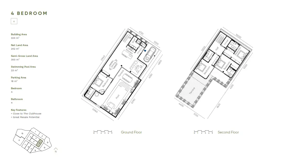 This Villa Spanning between 334 to 373 sqm of living space on 242 to 303 sqm of land. Designed with sophistication across two levels, the villa features four spacious bedrooms and four bathrooms, creating a comfortable and elegant living space for families or long-term stays. The enclosed living room connects seamlessly with the dining area and kitchen set, leading out to a private terrace and pool that reflect the calm rhythm of tropical life. Smart home technology, secure parking, and access to the on-site clubhouse—with a gym, café, and sauna—ensure every detail of daily comfort is well taken care of.