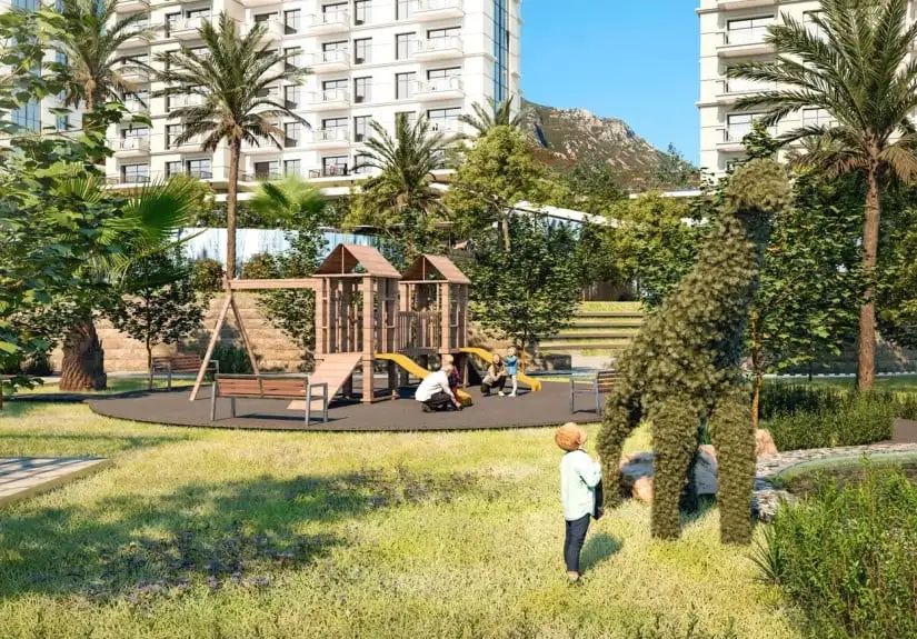 Project has various facilities for you to appreciate the nature and atmosphere of Turkey. You may enjoy the Aquapark swimming pool, fountain pool, pergolas, and BBQ places, as well as walking and jogging spaces. Project residents can enjoy a spa zone that features massage rooms, Turkish and Russian baths, a steam room, and a sauna. Furthermore, reception, lobby, mini club, disco, wine, and cigar bars await you to immerse yourself in the grandeur and dignity of a 5-star hotel.