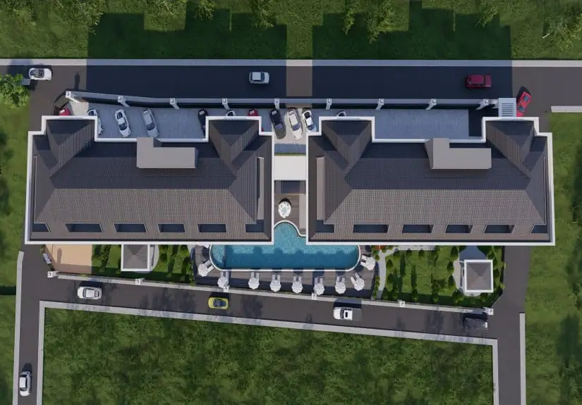 At Project you will never be left behind in fun and security. The exterior of the project includes an outdoor pool, bbq area, parking lot, generator, gazebo, lounge and children's playground. In addition, thanks to the 24/7 security of the project, you can play with your child without worrying about your safety. On the inside of the project, you can find a sauna, Turkish bath, lounge, gym, and many more.