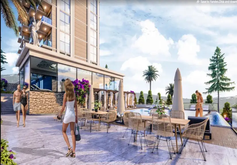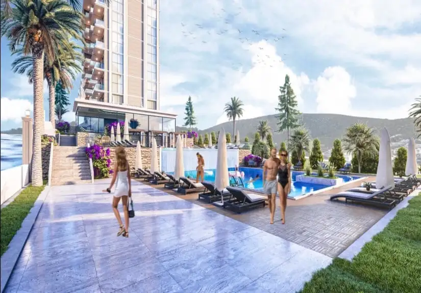 Project gives its residents a privileged lifestyle with its social facilities, in addition to its unique living spaces. The project is totally open on all four sides, thus making it possible to appreciate mountain, sea, and city views simultaneously. In addition, the project includes indoor and outdoor swimming pools, a sauna, a Turkish bath, a steam bath, a gym, a children's playground, a cafe, a bar, a cinema, and resting rooms.