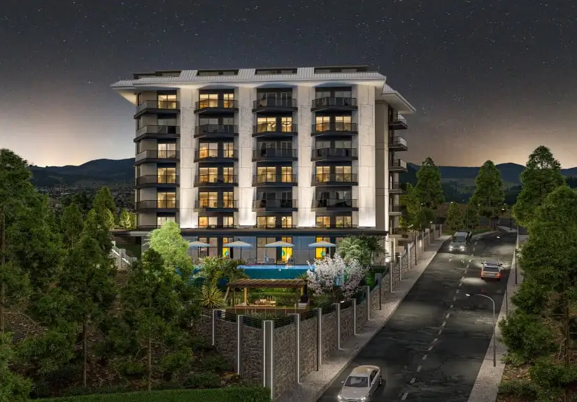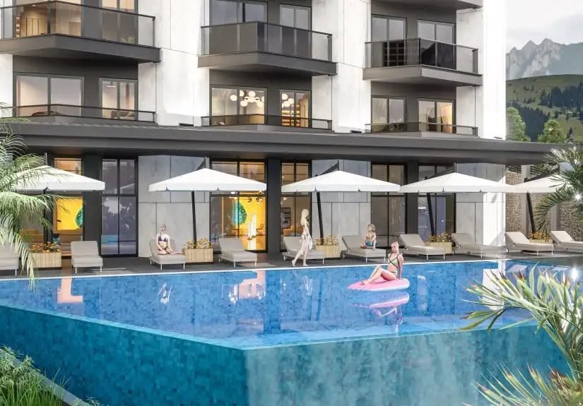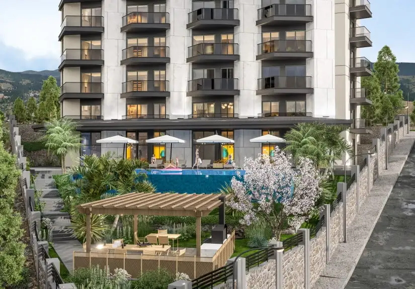 "Project" rises majestically over six floors, featuring 25 elegantly designed 1- bedroom units across its first five levels, and 5 exquisite 2- bedroom duplexes crowning the sixth floor, each promising an unparalleled living experience just 2.5km from the shore. The project is a sanctuary of wellness and leisure, boasting amenities such as an outdoor swimming pool, a state-of-the-art fitness center, a traditional Turkish bath, steam room, sauna, charming camellia, children's playground, snack bar, and BBQ area, ensuring a vibrant community life enriched with social activities.