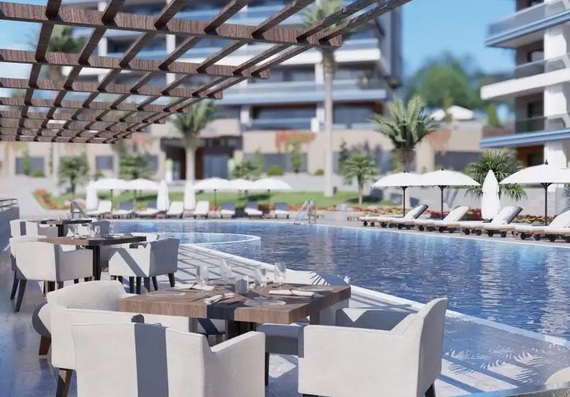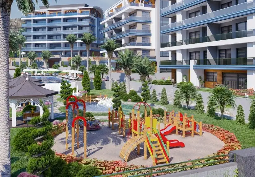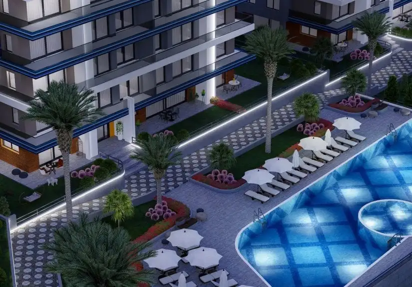 Located at Mahmutlar, Project established on a beautiful coastline and popular location for tourism.Modern architecture meets with the greenery and pastorality of the Alanya's one of the best locations to live in. Project consists of 3 blocks with 7 storeys, with each flat including household appliances like Beko brand fridge,washing machine and oven, DEVI brand underfloor water-run heating system, air conditioner for every room,closet.