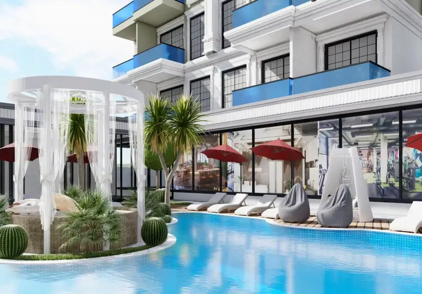Apart from the stunning view of the Mediterranean, Apex Residence offers a host of social opportunities for residents. The complex boasts a beautifully landscaped garden, children's playground, and swimming pool with a water park - perfect for families who love to relax and have fun. There is also a fitness center, spa, and Turkish bath, ideal for those who want to stay fit and healthy.