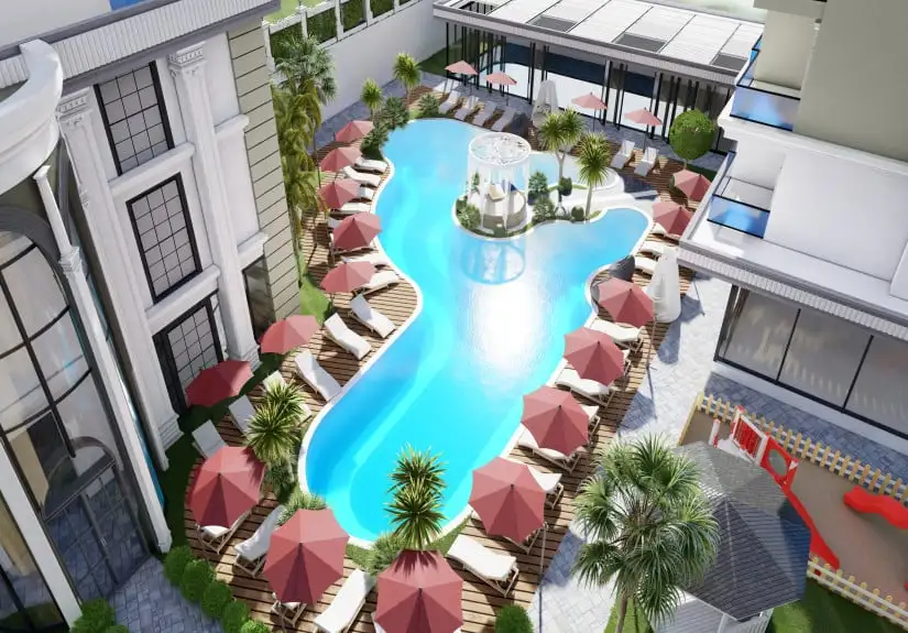 In summary, Apex Residence offers more than just a luxurious living space. It is a place where families can bond and socialize, stay healthy, and indulge in leisure activities. With outdoor and indoor pools, children's pools, a Turkish hammam, a sauna, a steam room, relaxing zones, playgrounds, and car parking, this seaside project is not to be missed.