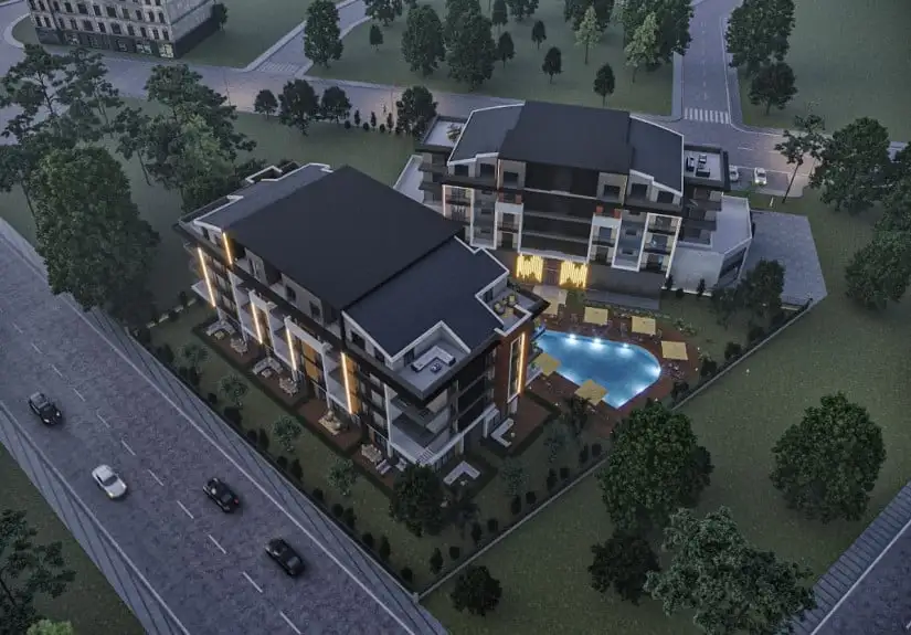 Project consists of two blocks and each block has three floors. The apartment options of the project, which respond to the wishes and needs of all lifestyles, are 1-bedroom, 2-bedroom, 2-bedroom duplex, 3-bedroom, and 3-bedroom duplex. The landscape areas, swimming pool, and sunbathing areas of the project are designed for you to experience the warmth of the Mediterranean to the fullest. In the modern and aesthetically designed landscape areas, you will feel like you are on an endless vacation.
