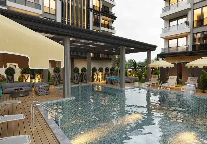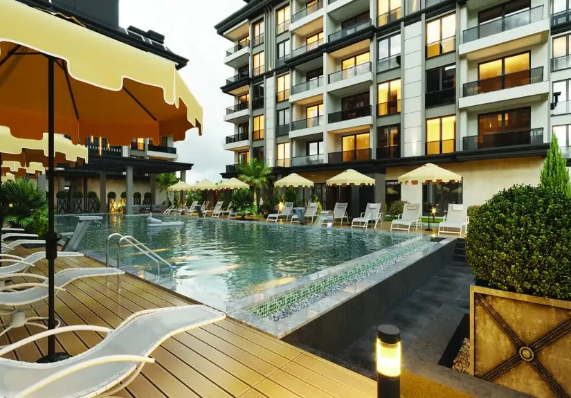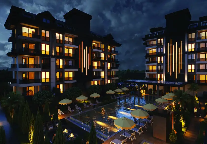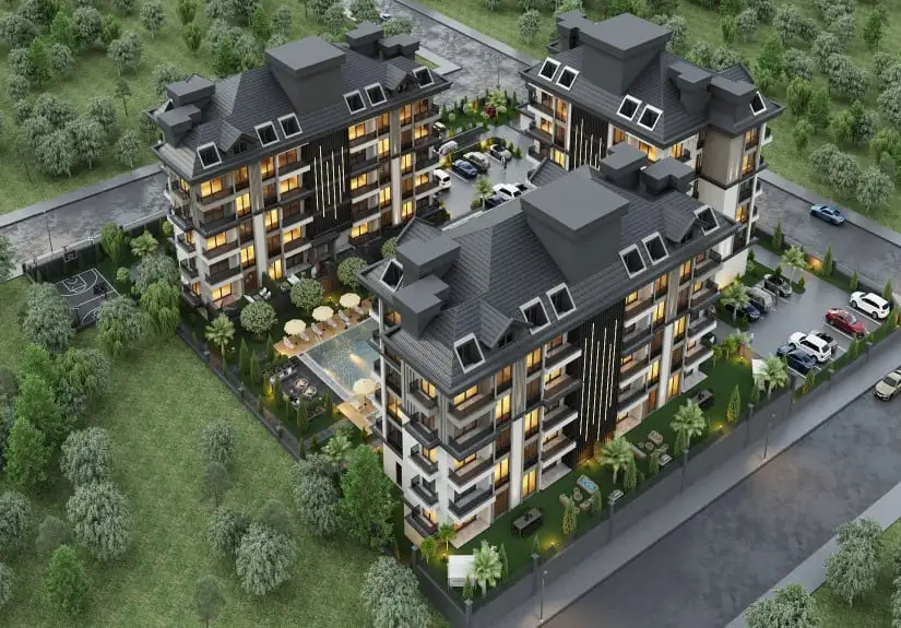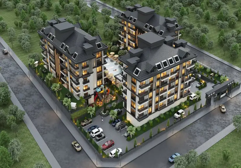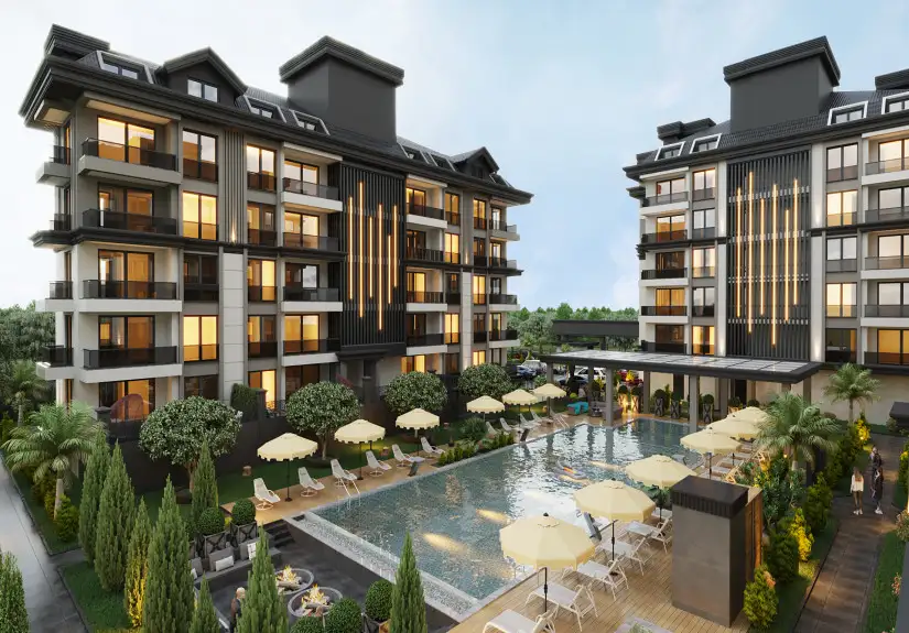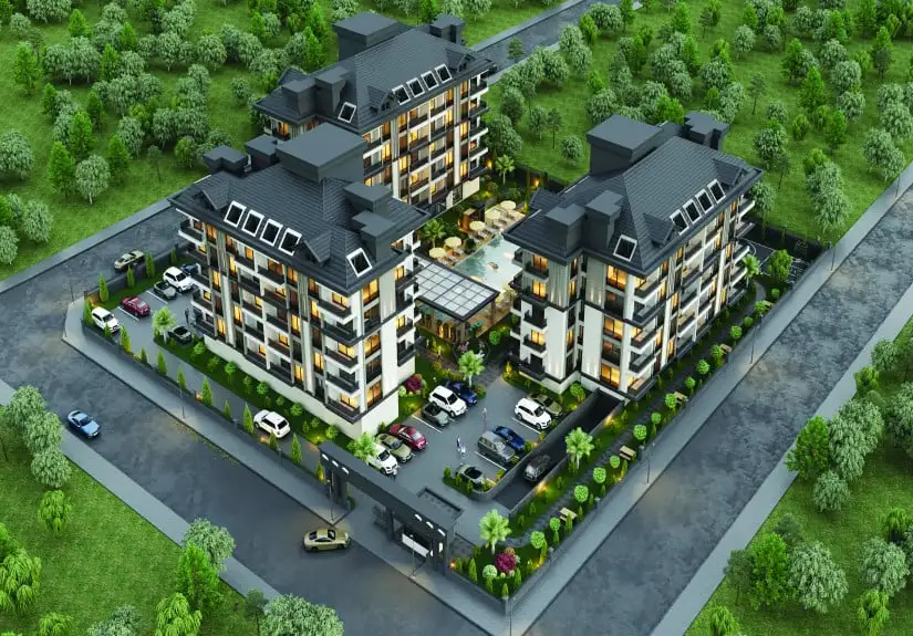 Project boasts 110 meticulously designed apartments, available in 1 + 1 and 2 + 1 duplex options, perfectly catering to the diverse needs of contemporary families. Positioned in a rapidly developing area of Alanya, this project provides residents with the ultimate living experience, enhanced by its striking architecture and superior design quality. Here, comfort and elegance are seamlessly integrated into every corner, ensuring a taste of life that is both vibrant and tranquil. The lush green surroundings and thoughtfully planned social facilities ensure that every moment spent here is filled with joy and vitality.