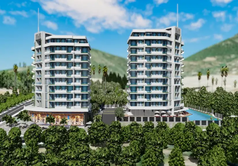 Project is a luxury residential development comprised of two eight-story buildings. The buildings have a modern and innovative design that is combined with shared infrastructure. Project has a variety of apartment layouts to suit your needs. The building includes 1-bedroom apartments comprising 45 m2, 2-bedroom apartments comprising 68 sqm, 2-bedroom duplex apartments comprising 90 sqm, and 3-bedroom duplex apartments comprising 130 sqm. Each apartment has a view of Antalya's magnificent rocky mountains.