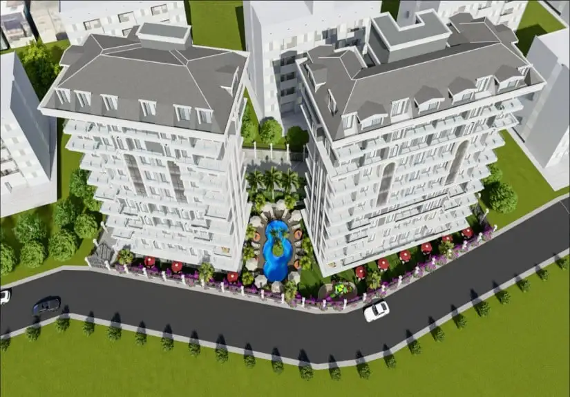 Project, consisting of two blocks, was built on a total area of 2,380 square meters. In addition, the project conquers the hearts of every lifestyle with 1-bedroom, 2-bedroom, and 2-bedroom duplex apartment options. They include all the facilities you need to live every moment of your life with the joy and excitement of the first day of the holiday in the project. You can enjoy swimming freely in the indoor swimming pool or you can use the outdoor swimming pool for sunbathing in the warming sun of Alanya and then cooling off. Thanks to the facilities of the project, your child will always enjoy the fun. In the mini aquapark area, your child will want to jump into the pool and slide down the slides over and over again! Furthermore, while experiencing the most comfortable and luxurious form of sports in the fitness center, you will detox in the sauna and stay away from stress.