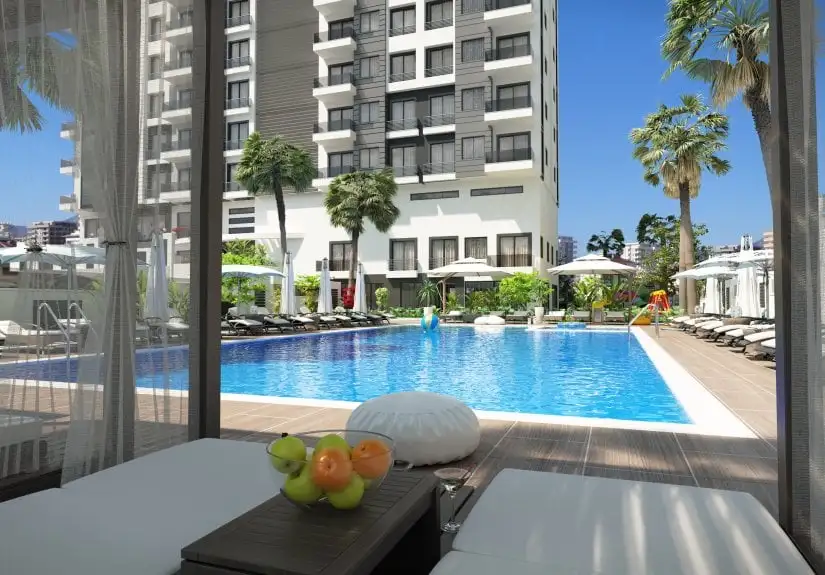 The apartments in Project which is 150 meters from the sea have pool and sea views. There are residents' facilities where you can spend a pleasant and peaceful time. The project has indoor and outdoor swimming pools, gazebo, playground, sauna, gym, jacuzzi, table room, and indoor and outdoor parking. There are hallstands and kitchen cabinets in the apartments.