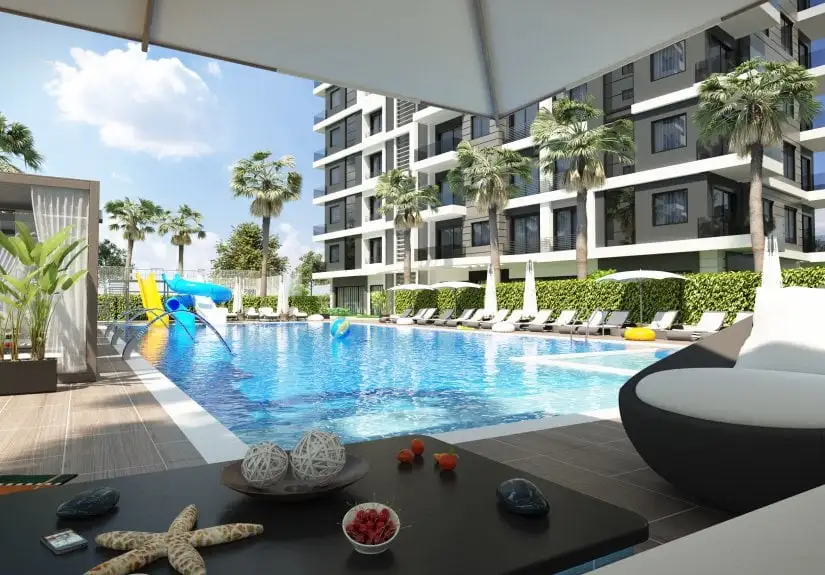 The apartments in Project which is 150 meters from the sea have pool and sea views. There are residents' facilities where you can spend a pleasant and peaceful time. The project has indoor and outdoor swimming pools, gazebo, playground, sauna, gym, jacuzzi, table room, and indoor and outdoor parking. There are hallstands and kitchen cabinets in the apartments.