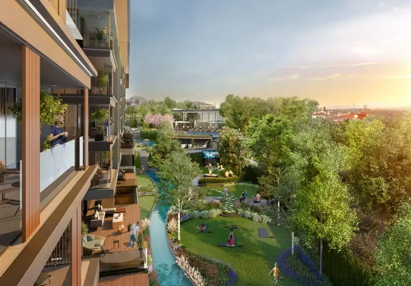 Strategically positioned near Kandilli and Çengelköy piers, the project provides easy access to sea transportation, while its proximity to the Fatih Sultan Mehmet and 15 July Martyrs Bridges ensures seamless connectivity to the city. Surrounded by lush green parks and natural groves, İV Kandilli offers exquisitely landscaped areas with tranquil water features, enhancing its peaceful atmosphere. With all vehicle traffic directed underground, the development prioritizes pedestrian-friendly spaces, allowing children to play freely in expansive green areas and residents to enjoy relaxing walks.