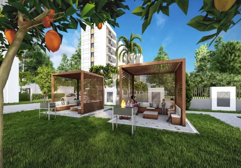 Spanning over 8,600 m², Project captivates with its modern architecture and comprehensive amenities. The complex comprises 80 units of 1- bedroom and 2- bedroom apartments, offering comfortable living spaces with American kitchens, private gardens, and spacious balconies.